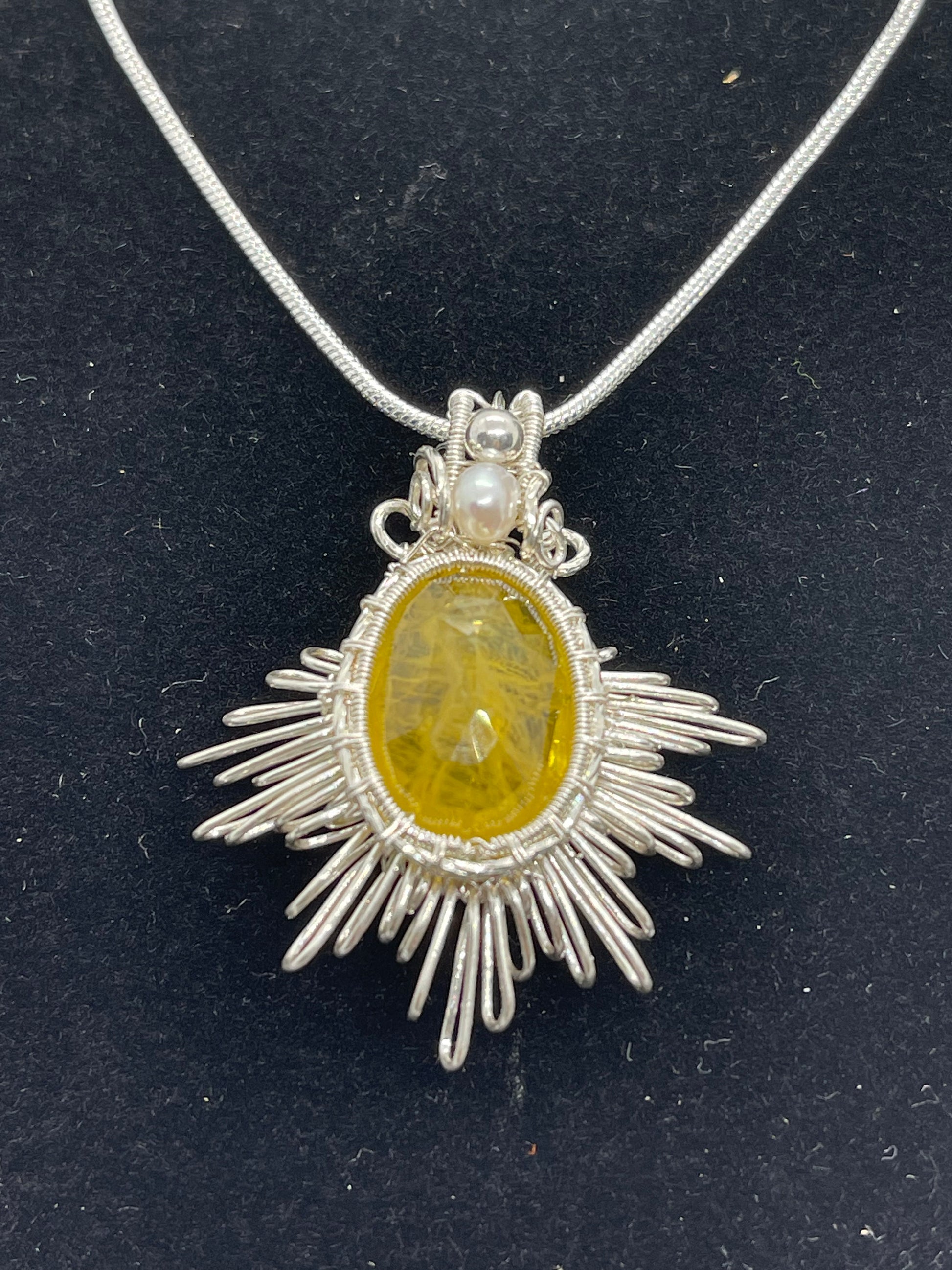 10 ct Natural yellow sapphire pendant, Sterling silver pendant Seed pearls, antique, handmade, Sterling silver, Pendant, Gift