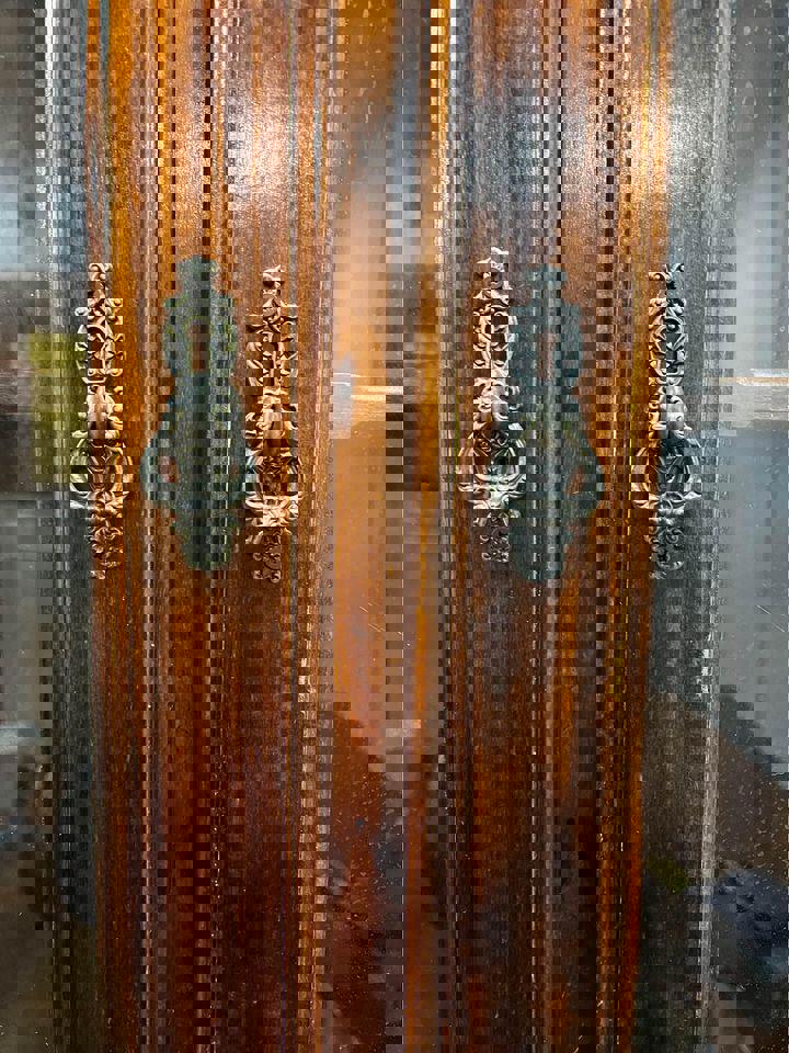 Antique tall display cabinet or bookcase with 2 glasses doors. Solid mahogany piece. pure brass accessories.