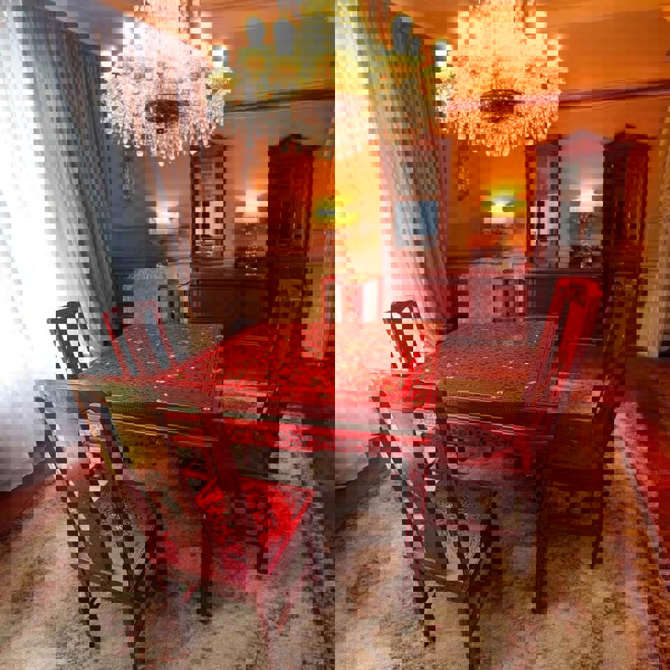 ✅ 8 Elegant Chairs – Beautifully hand-painted with intricate floral and geometric patterns