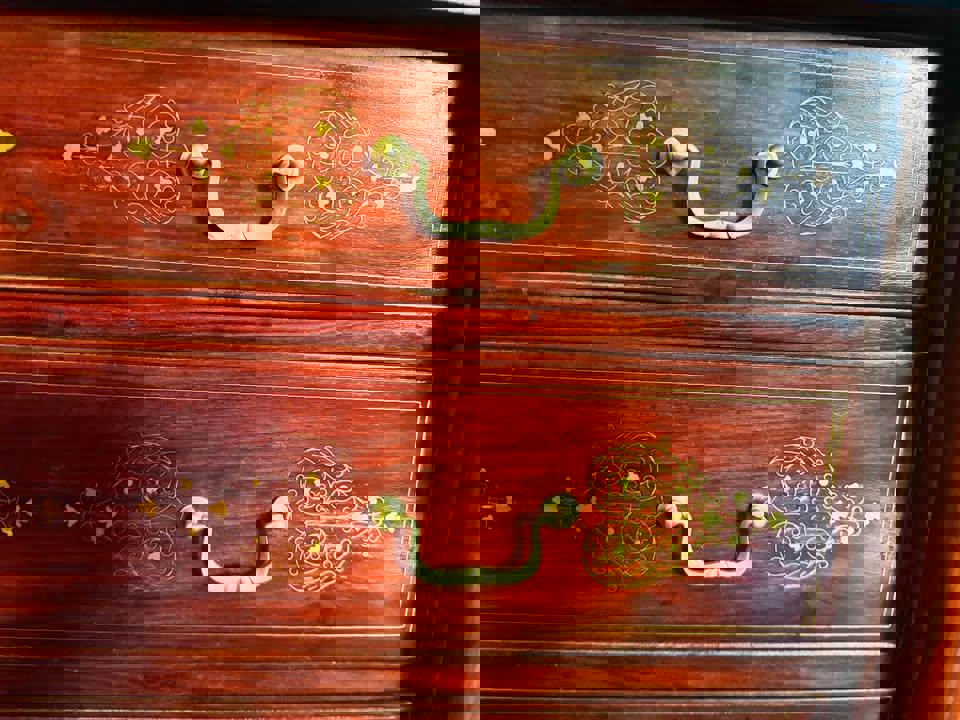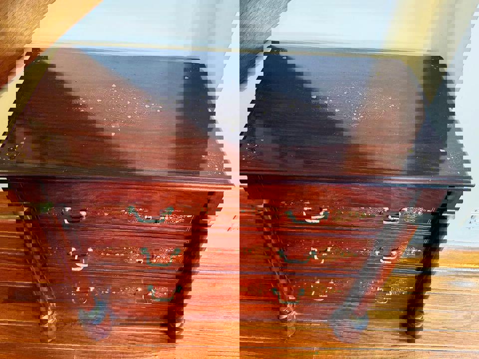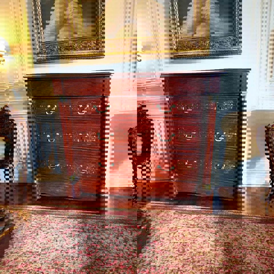 The deep wood tones, paired with the ornate handles and accents, make it a true statement piece for any room. Perfect for those who appreciate timeless craftsmanship and historical charm.