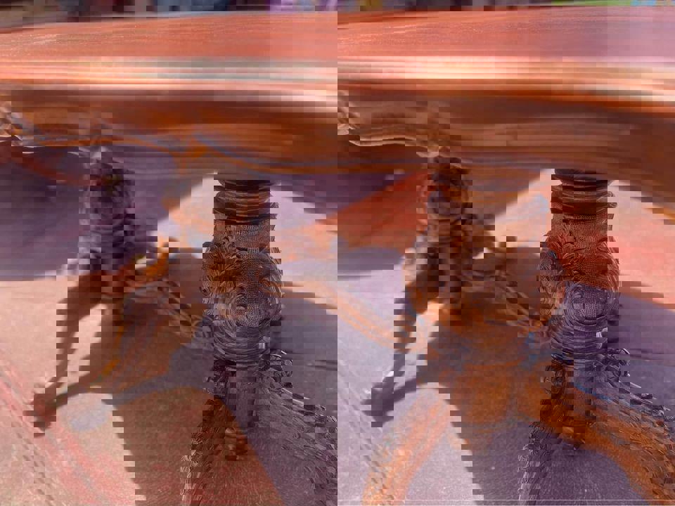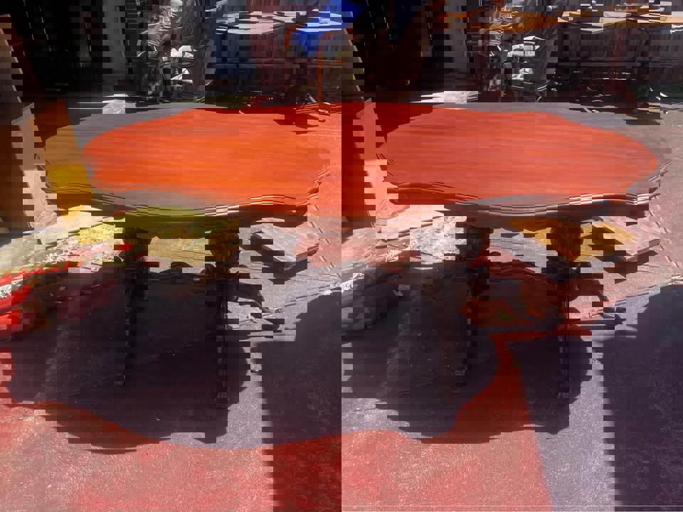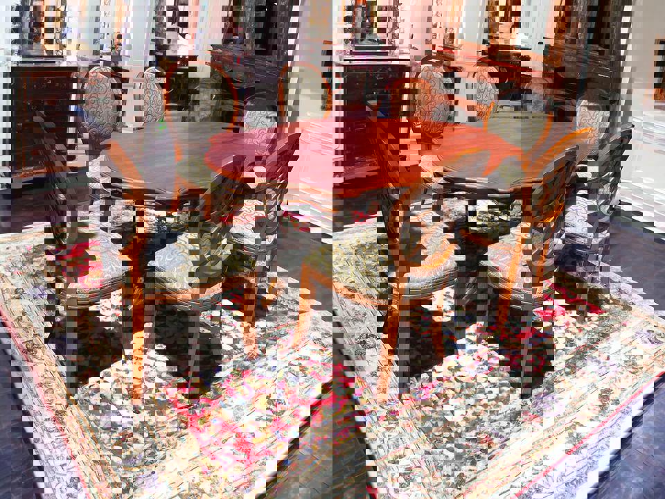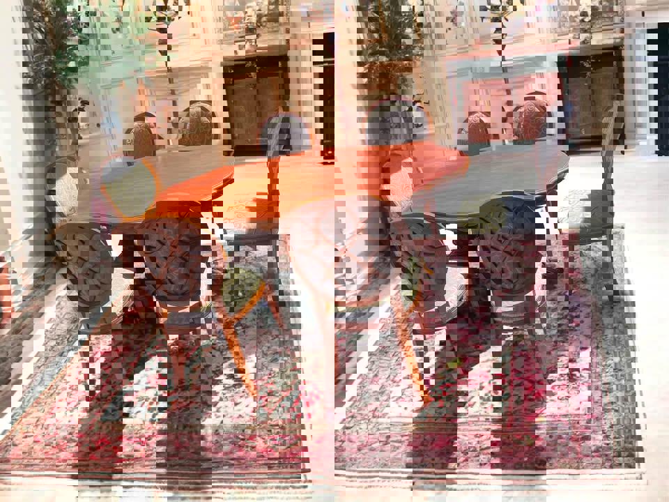 Antique solid timber oval shape dining table 175x 108x76 cm with 6 chairs