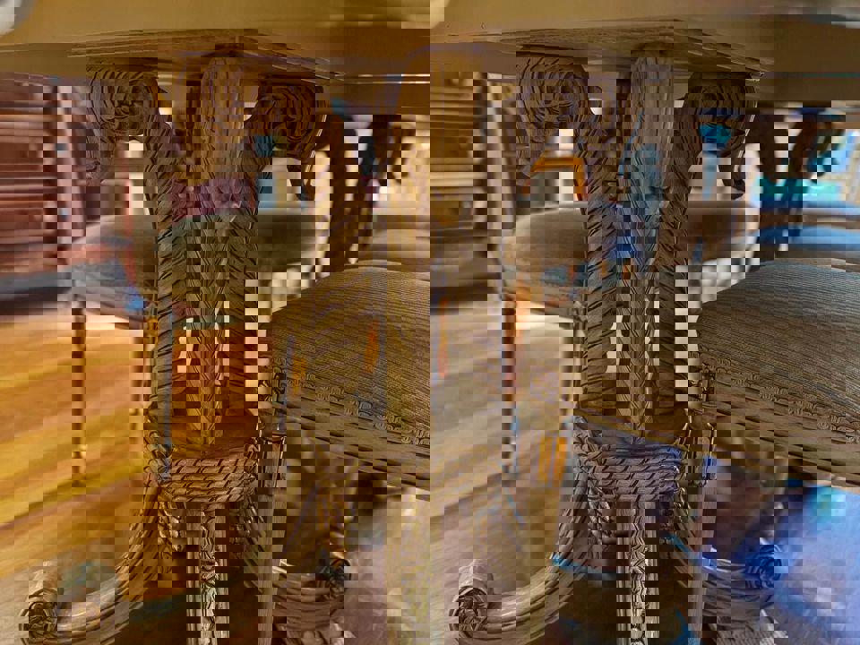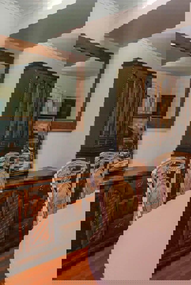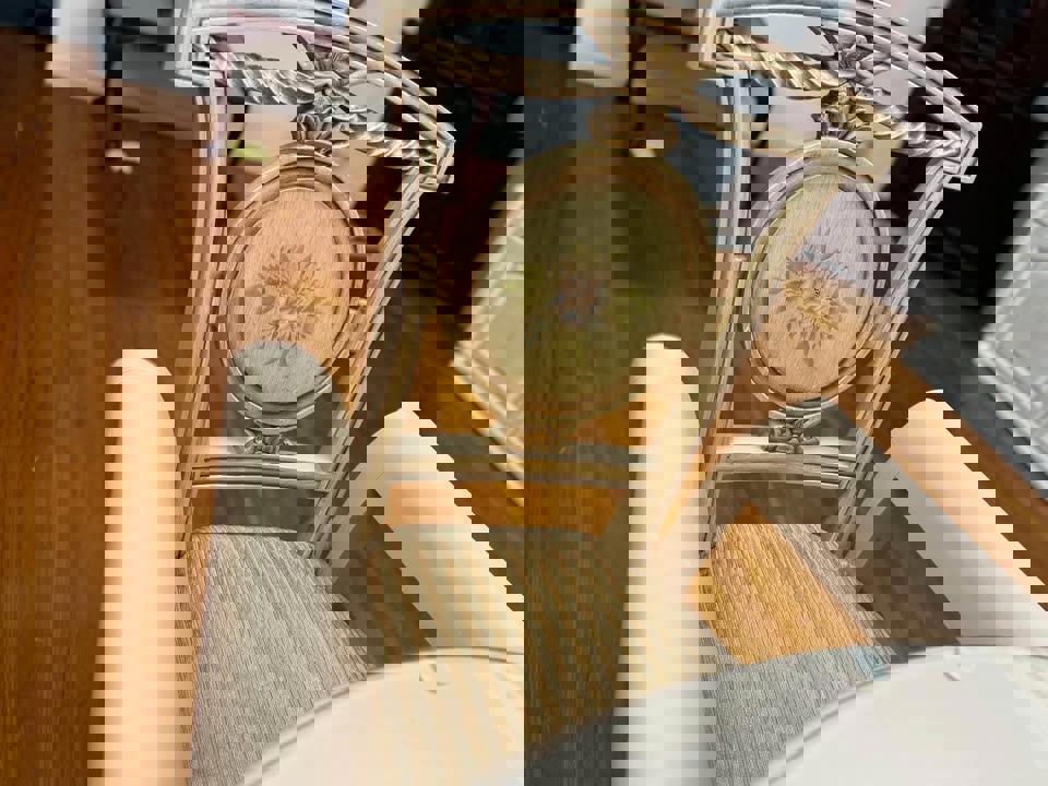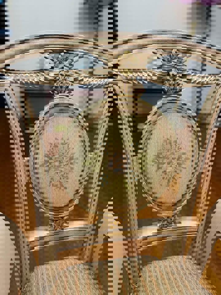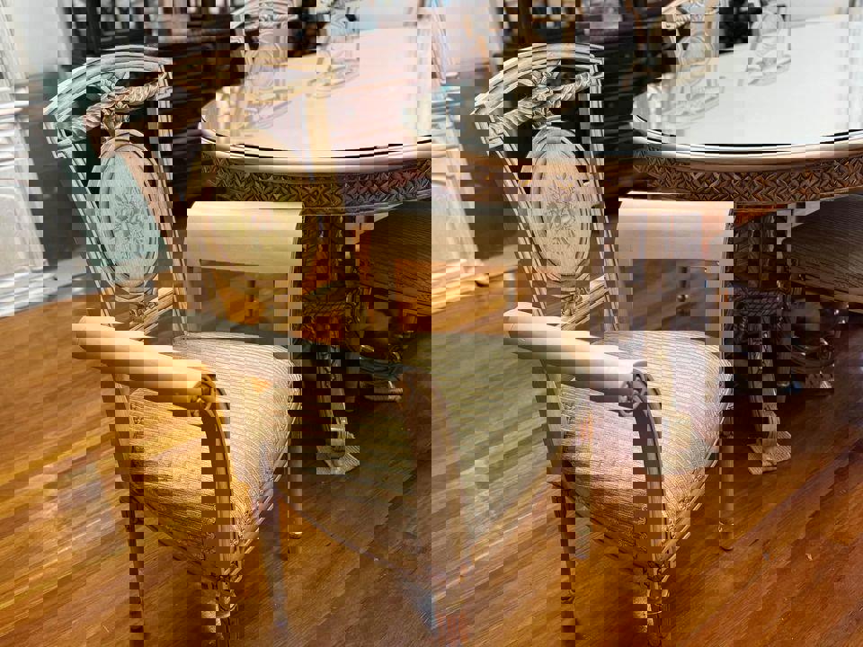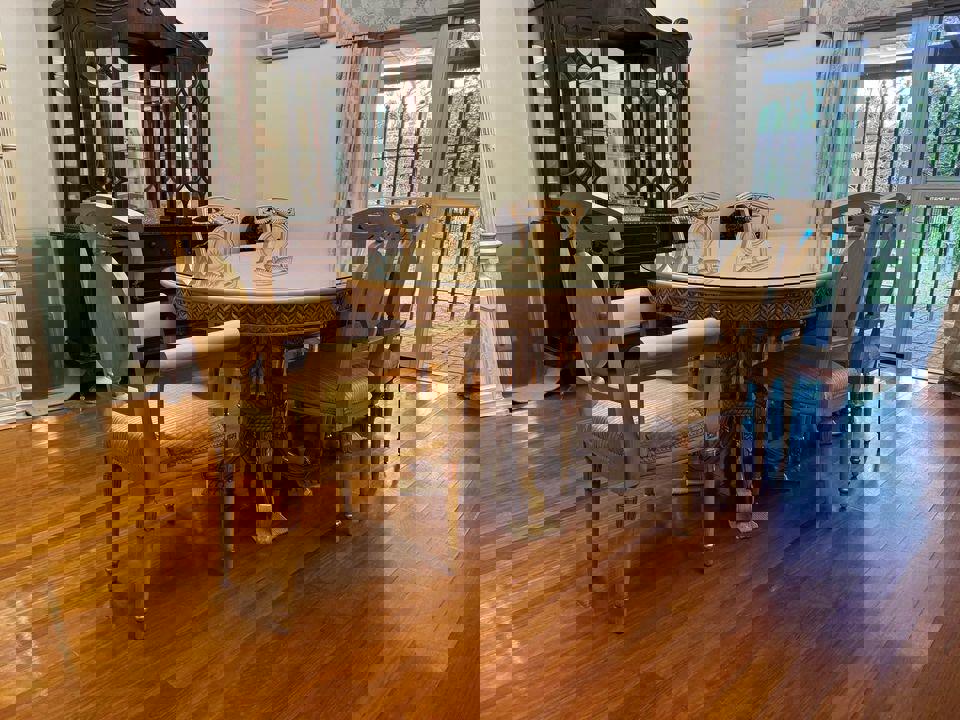 Antique white French dinning table with 6 matching chairs with glass top one piece with solid timber 240x100x76cm
