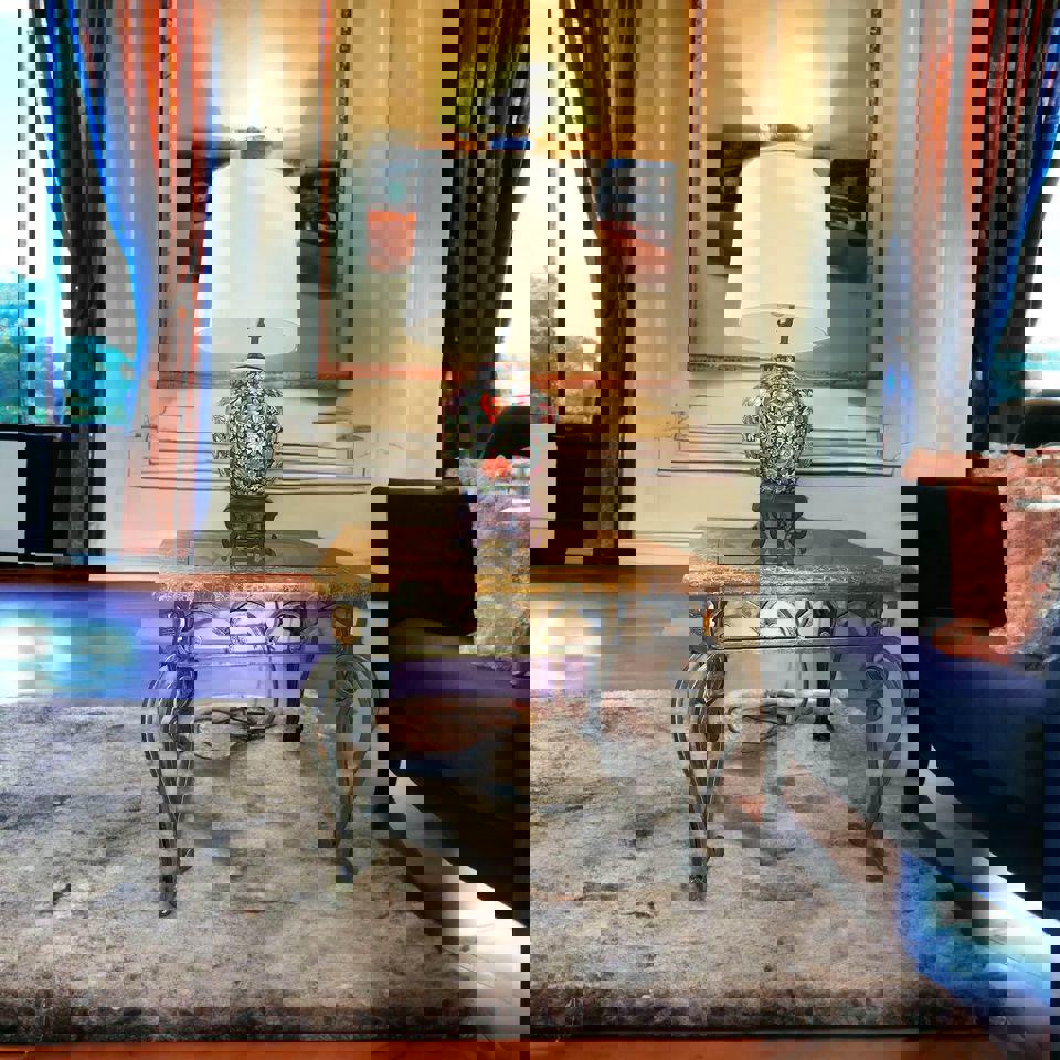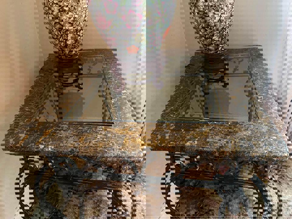 Enhance your living space with this exquisite decorative lamp on a stylish marble top table. Perfect for adding a touch of sophistication, this matching set combines functionality with artistic charm.