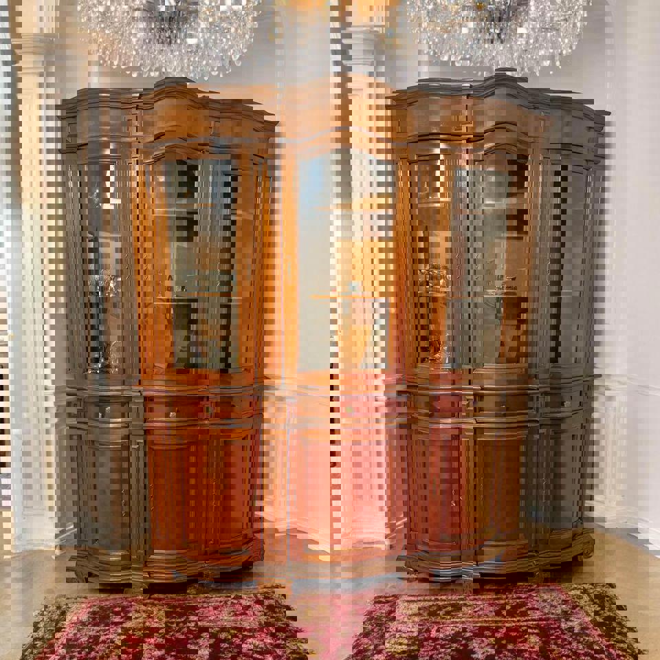Bring sophistication to your space with this stunning mahogany display cabinet, perfect for showcasing fine china, collectibles, or cherished keepsakes.
