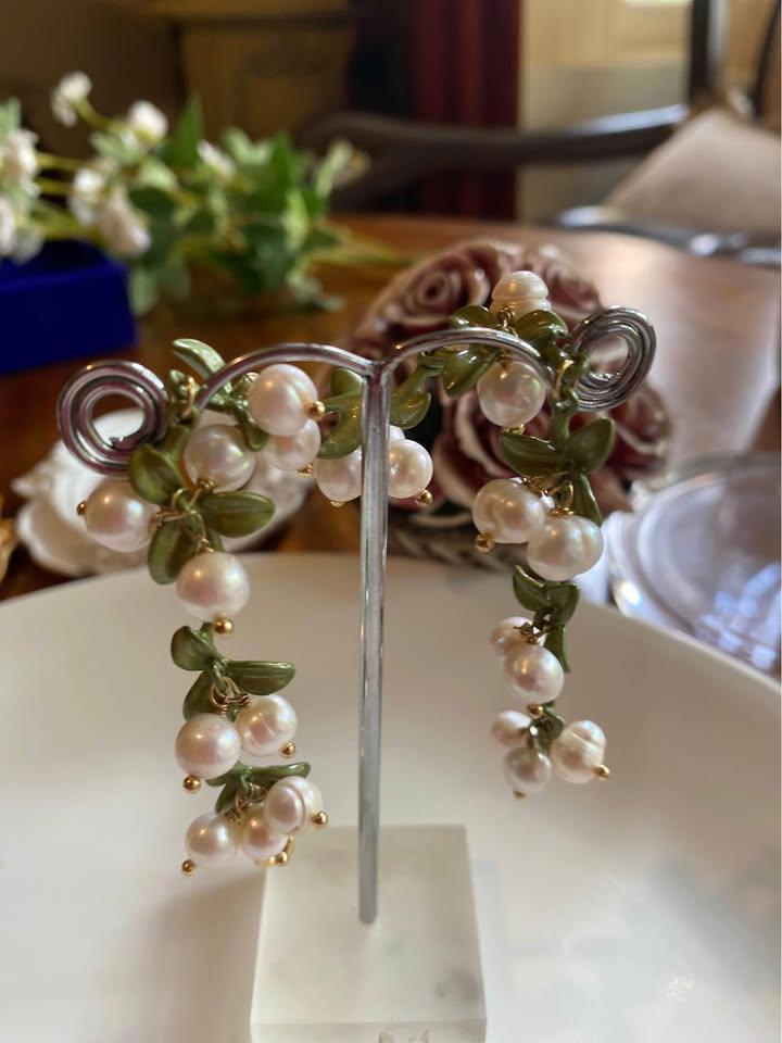 Handmade Women Lily Bell orchid Cultured Pearl Vintage Bracelets& pendent