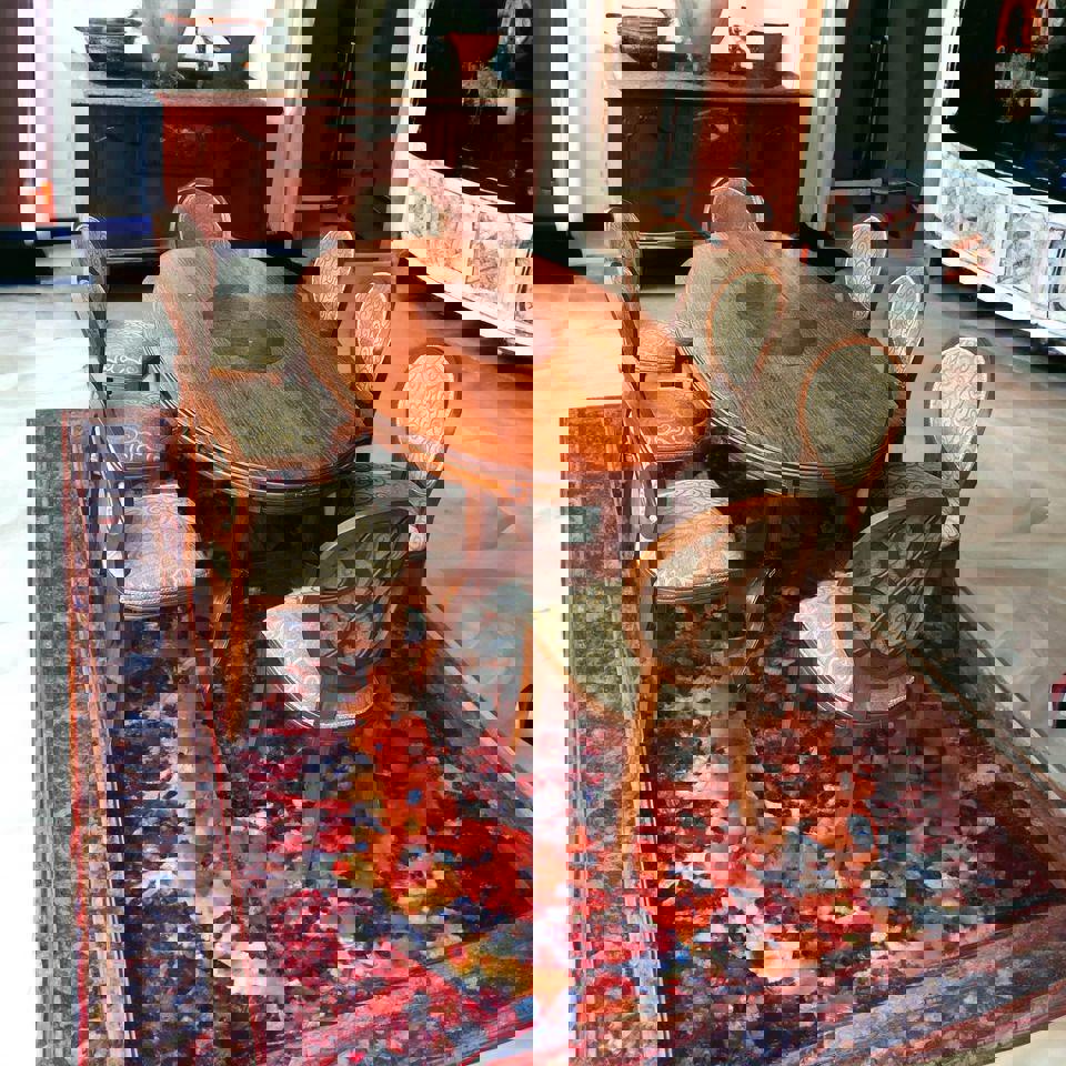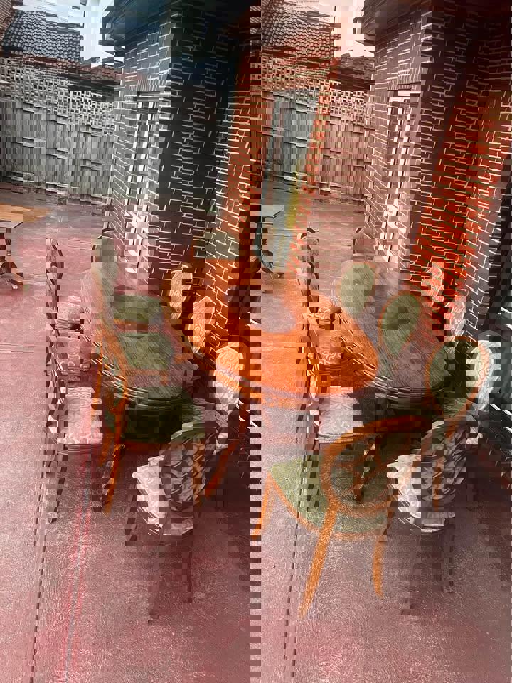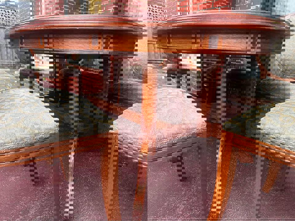 Impressive solid dinner table 2.45mx1.30m with 8 cushion large chairs