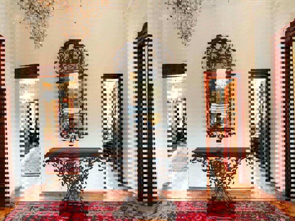 Excellent condition antique iron and timber hall stand with large matching mirror. 160x40x92cm