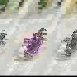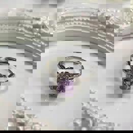 Natural Amethyst ring in silver adjustable purple ring