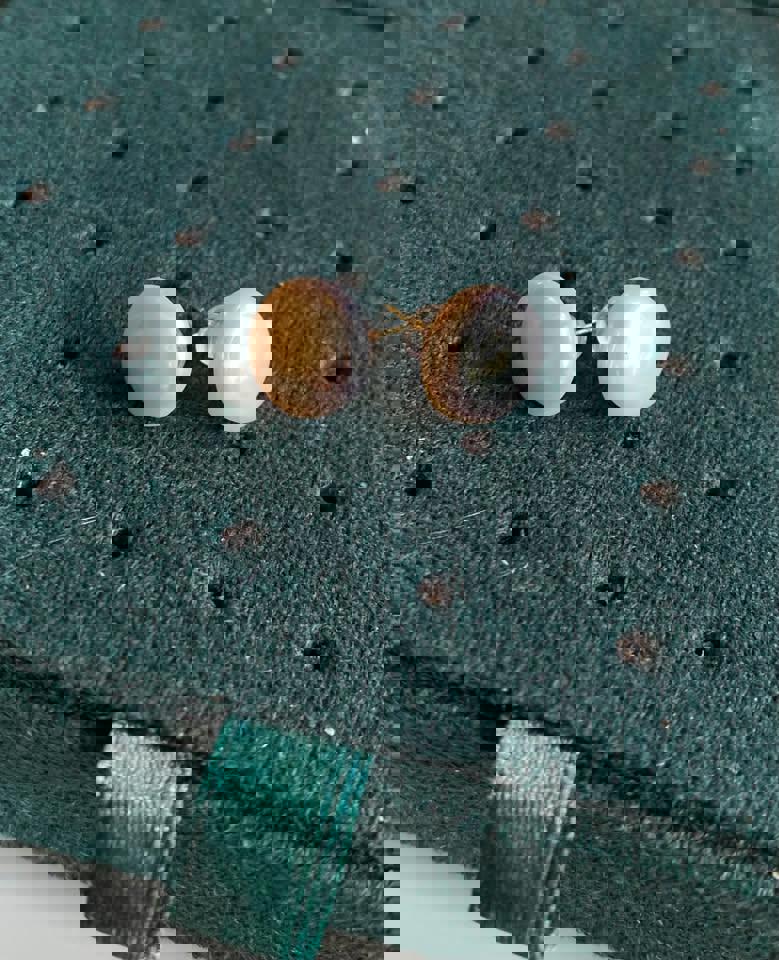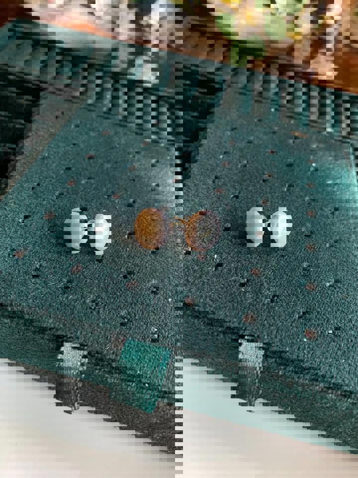 Natural pearl stud in 18k gold earrings with certificate