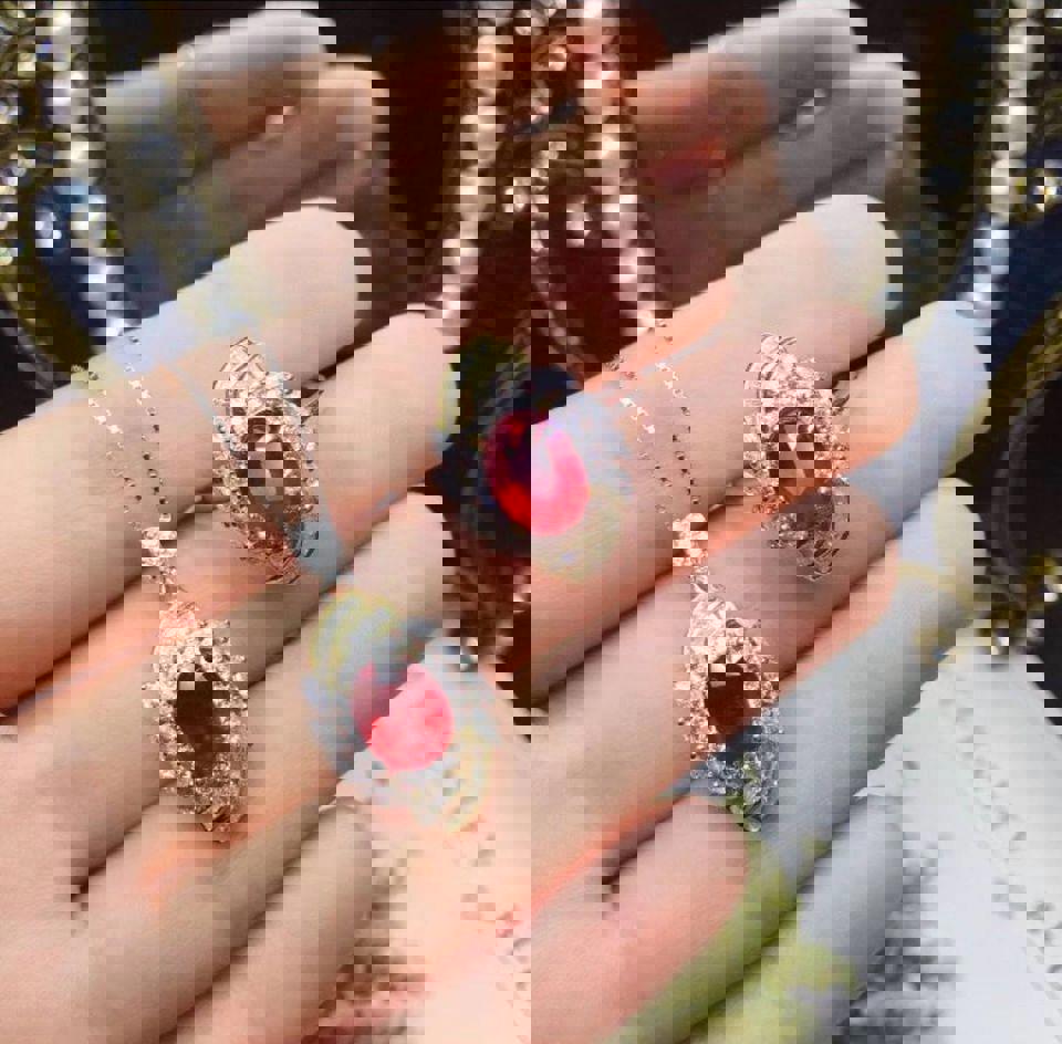 Natural Ruby in Sterling Silver with zircon adjustable ring and necklace set Great Gift for Her