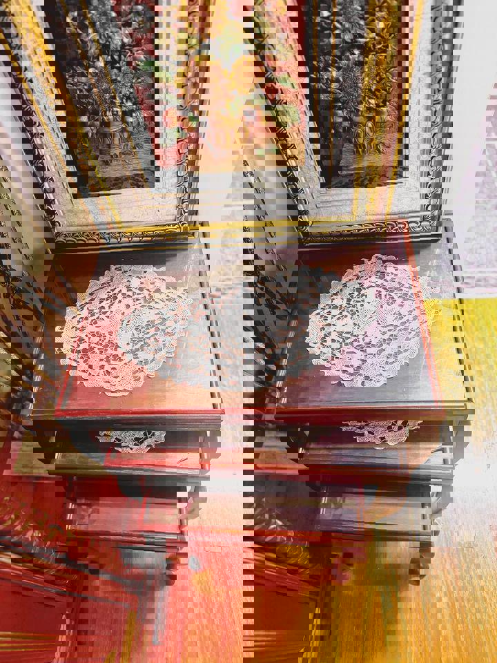 Nest of tables tables set with glass top and a matching coffee table Queen Ann style 4 pieces