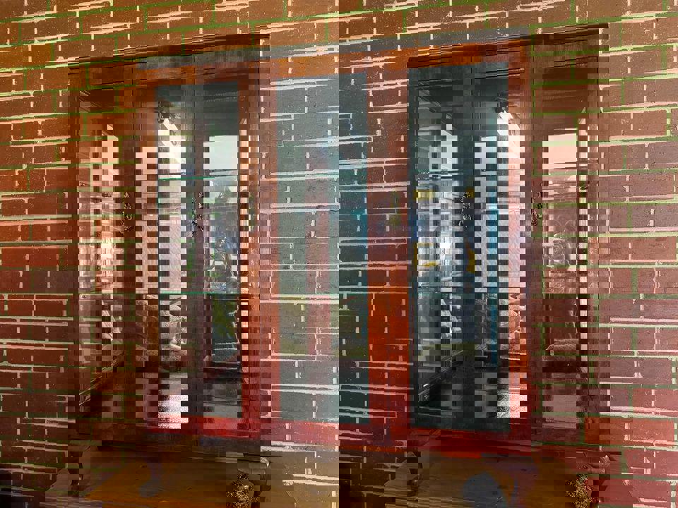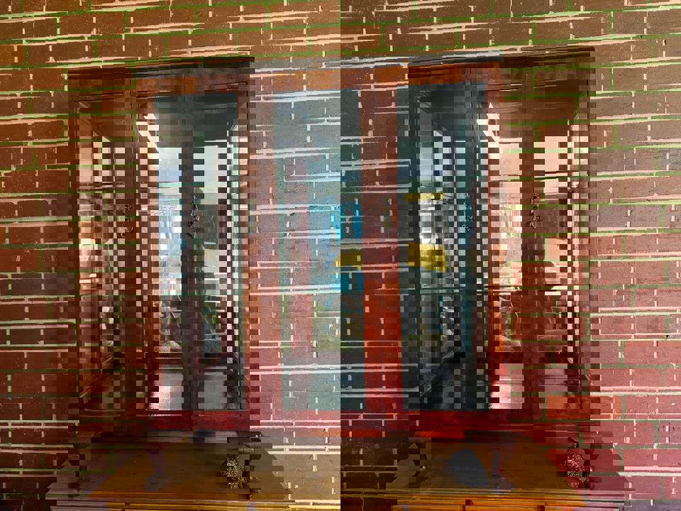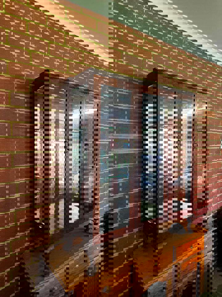 Real vintage glass display cabinet. Around 130h x100x40 cm.