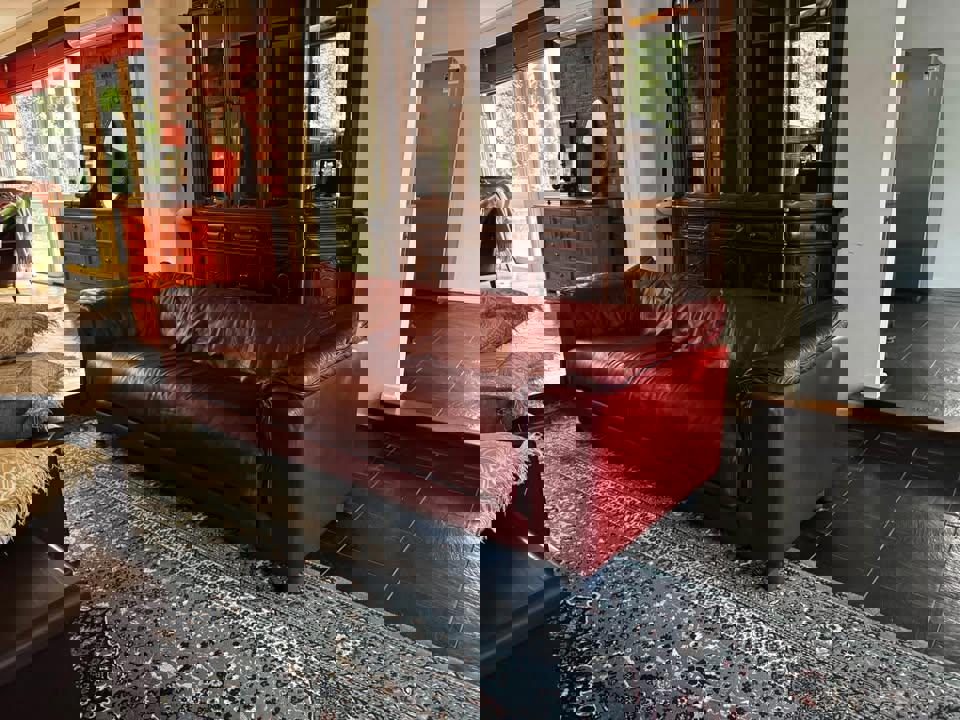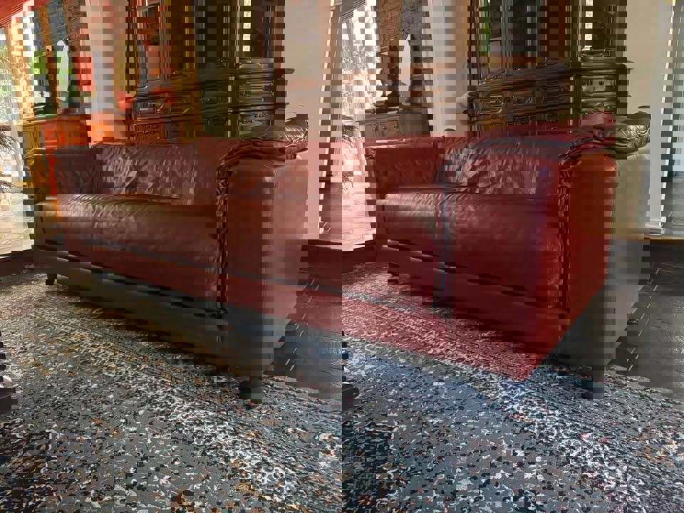 Excellent condition red leather sofa. Big 3 seats one. Very comfortable and skin feel leather.
