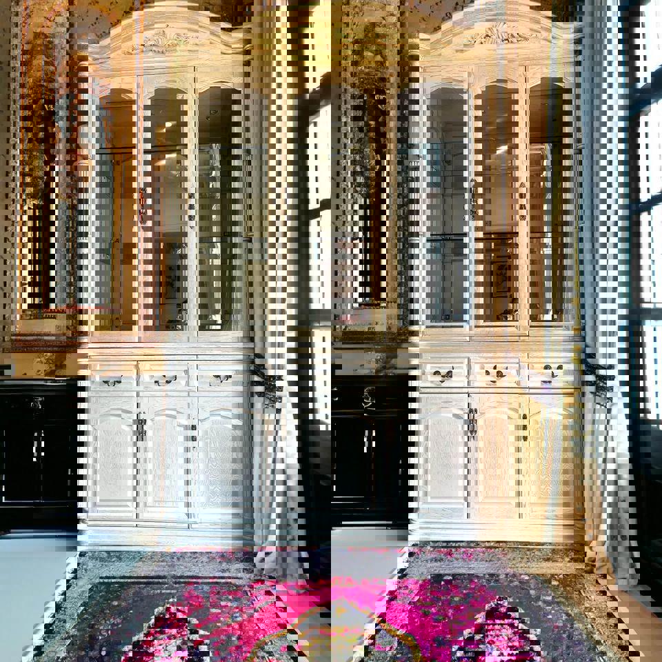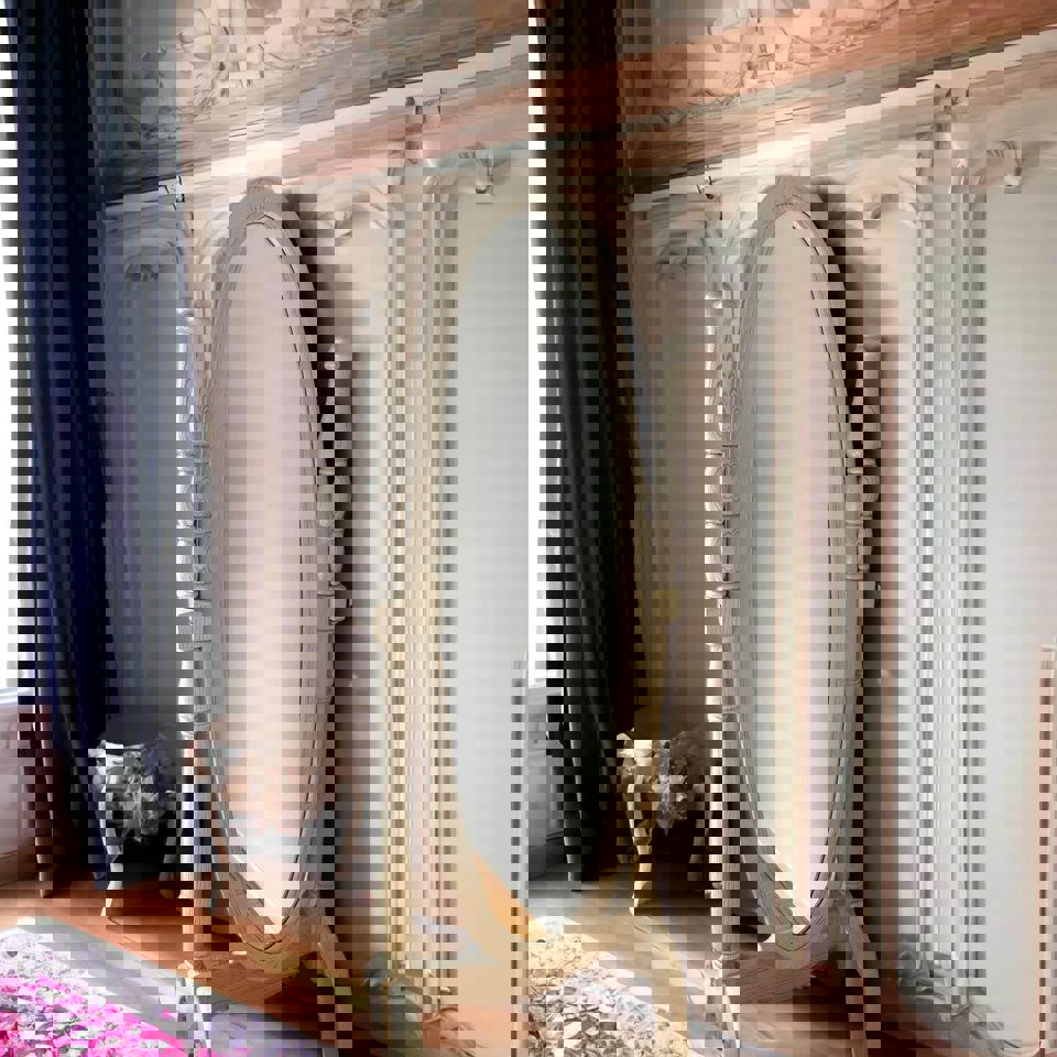 White antique style French cabinet tall boy chest of drawers full length mirror bedside tables